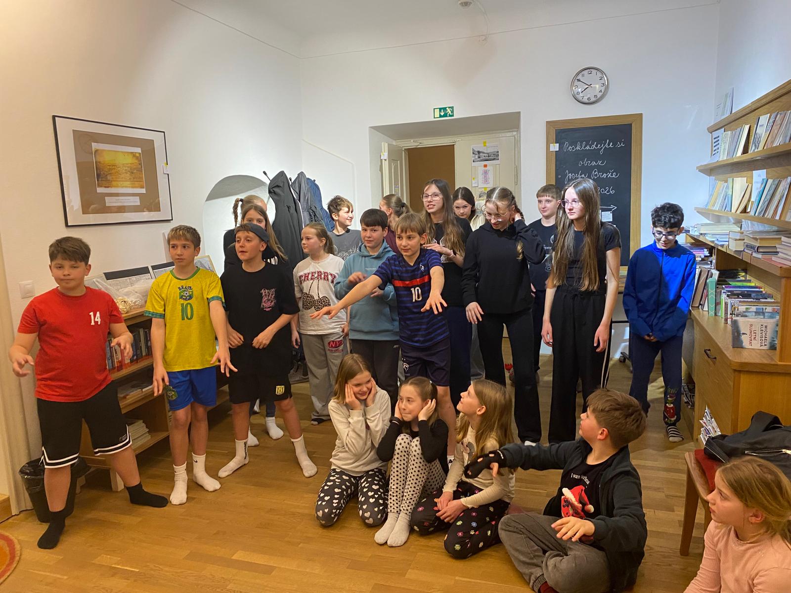 Osmáci se v rámci hodiny výtvarné výchovy přišli podívat na Brožovy kresby, které jsou součástí jubilejní výstavy k 160. výročí narození tohoto významného a zasloužilého vlachovobřezského rodáka.
