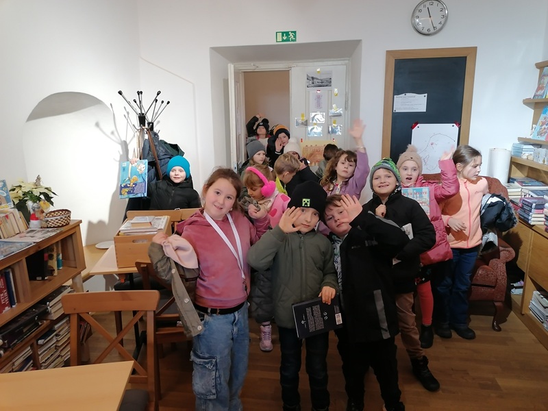 Třída 2. B s paní učitelkou a paní asistentkou byla dnes v knihovně na pravidelné Dílně čtení naposled v tomto kalendářním roce. Děti zjistily, že knihovny není třeba se bát a knížky (ani knihovnice) nekoušou. Ovšem jak to je se zdejším strašidlem?! To druháci budou mít možnost zkoumat zase až po Novém roce.