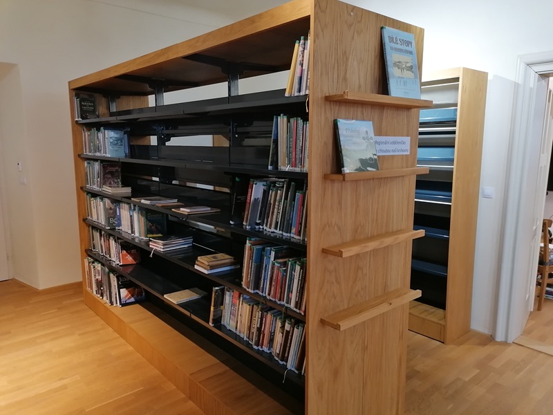 Proč stěhování začalo právě regionální literaturou? Protože naše sbírka je fakt dobrá! Najdete tu nejrůznější a mnohdy nečekaná témata ve vztahu blízkému okolí, k Šumavě a k jižním Čechám vůbec. Regionální literatura se půjčuje po detektivkách úplně nejvíc - a pozor, regionální knížky si prostřednictvím svých rodinných příslušníků či sousedů půjčují i chlapi, kteří do knihovny nechodí, aby si snad ve svém chlapském kolektivu nezadali :-)